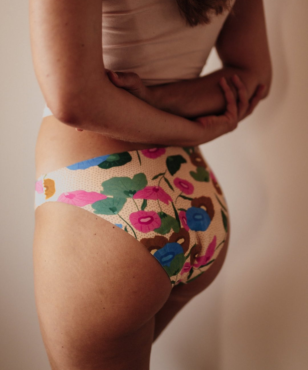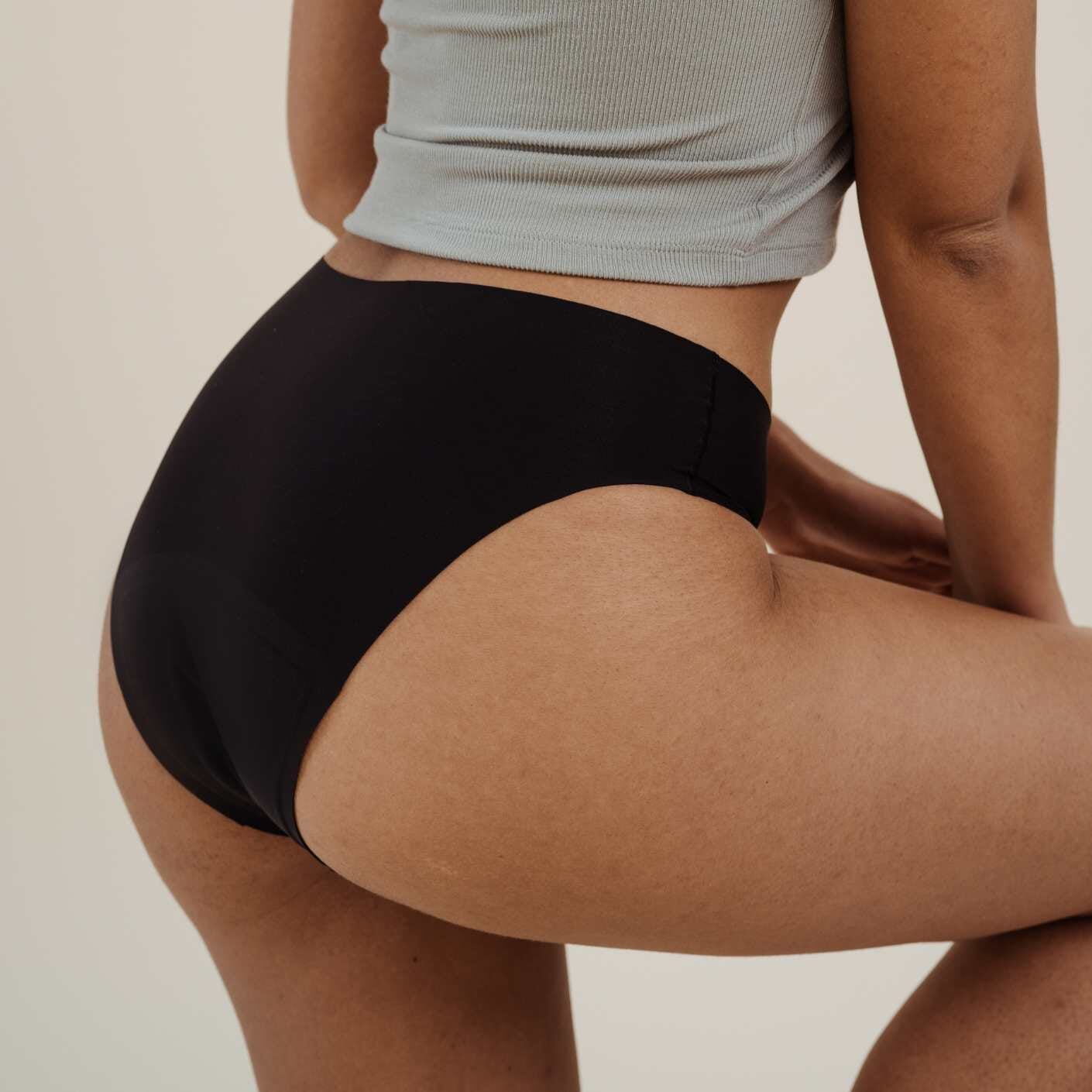 Zum einen: Deine Körperform. Welche Unterwäsche trägst Du im Alltag? Liebst Du Hipster, oder fühlst Du Dich mit High Waist wohler? Hoch ausgeschnittene Seiten oder lieber etwas Umarmung für den Po? Daran orientiert sich auch, welche Menstruationsunterwäsche am besten zu Deinem Körper passt. Und ganz klar gilt unter allen Umständen: Dein Körper muss sich nicht der Unterwäsche anpassen, sondern die Unterwäsche Deinem Körper.