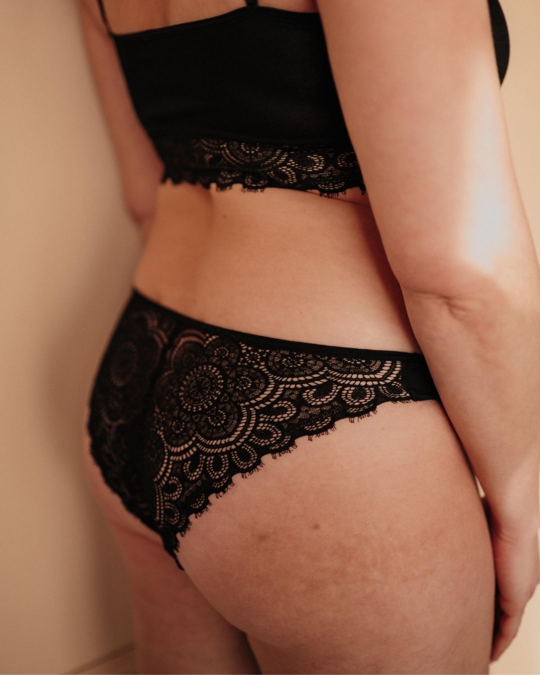 Periodenunterwäsche Spitze Slip Schwarz Set mit Bralette klassische Passform mit mittlerem Beinausschnitt